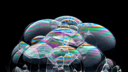 Macro shot of soap bubbles. Macro photography of soap bubbles.