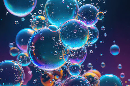 Vivid Soap Bubbles Floating with Iridescent Colors. Generative ai. High quality illustration