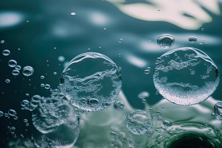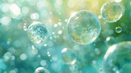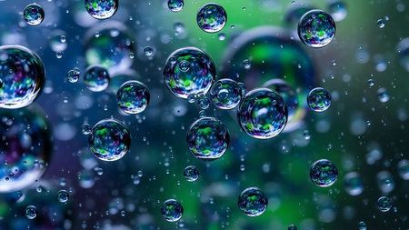 Beautiful background of abstract water bubbles with green and blue backgrounds, in the style of light pink by generative AI
