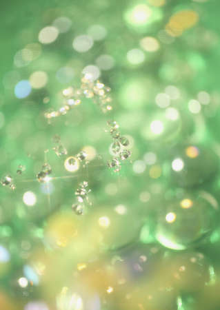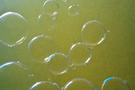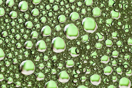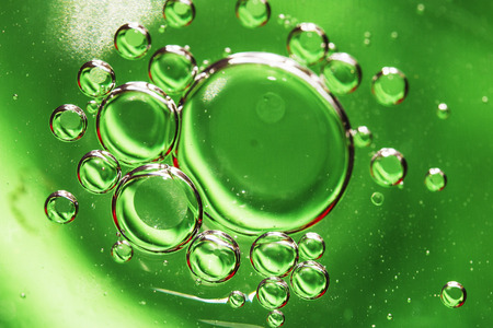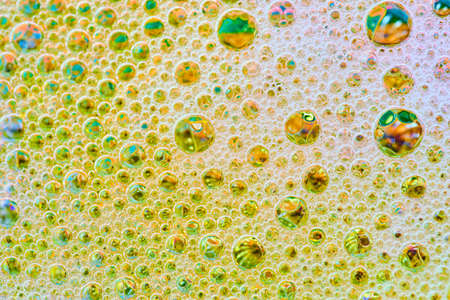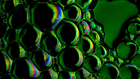 Beautiful green-yellow soap and oil colorful bubbles macro abstract detail