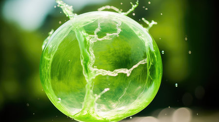 Vivid abstract image showcasing a dynamic green liquid splash with bubbles against a bright white background, perfect for creative projects and artistic designs.