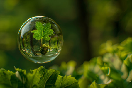 Conceptual image of oxygen molecules developing within vibrant leaves, symbolizing photosynthesis, clean air, and natural transformation.