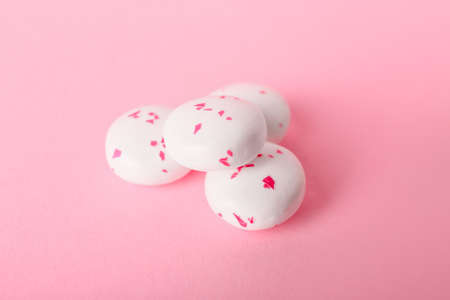 Chewing gums on white background. Sugar coated chewing gums for teeth health.