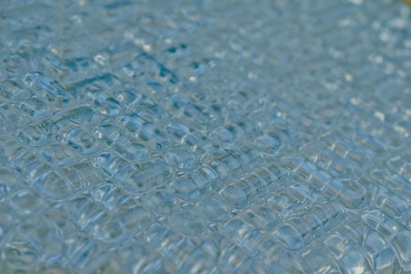Extreme macro of plastic bubble wrap texture. Selective soft focus, shallow depth of field. Abstract dreamy background