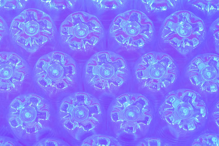 Color of the year 2022 very peri. Clear bubble foil for wrapping. Close up, texture background, trendy colors and pollution concept