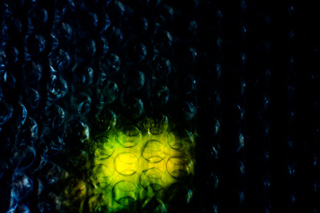 A close-up view of a protective bubble wrap surface, illuminated by a vibrant, holographic glow.