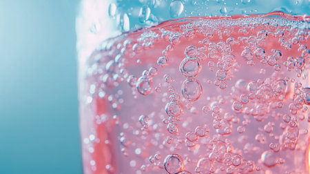 Close up of red soft drink inside a glass against a wall changing color. Stock clip. Bubbles of air inside a glass of soda.