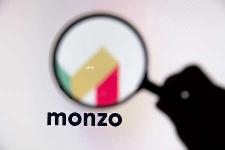 LONDON, UK - June 2020: Monza online banking logo under a magnifying glass