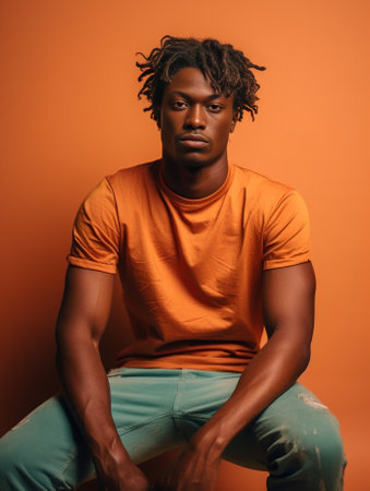 Handsome African man looking at camera while sitting against colorful background : Generative AI