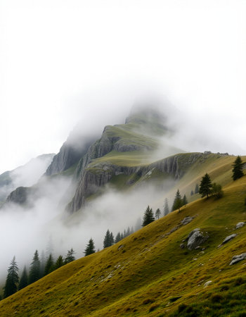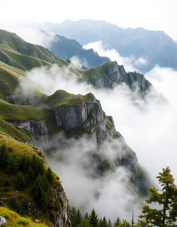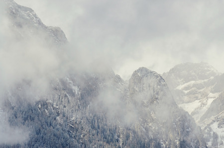 Foggy mountain landscape in the Alps, Switzerland, Europe.