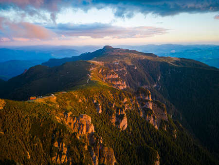 Bucegi Mountains, Romania. Summer scenery in Carpathian Mountains, sunrise on Bucegi ridge.