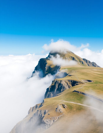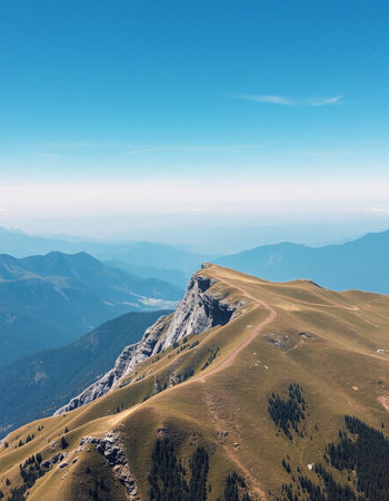 High altitude mountain landscape under blue sky