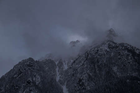 Mountains in the fog in the Dolomites, Italy.