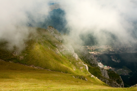 Mountain landscape with fog in the Bucegi Mountains,Romania.