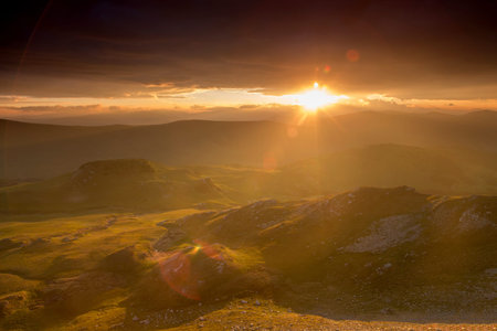 Summer sunrise landscape in the Carpathians Mountains, on Transalpina mountain road, Romania