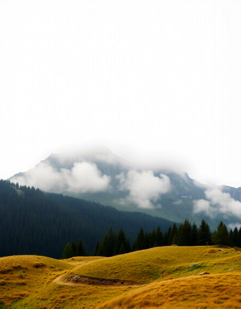 Foggy mountain landscape in the Dolomites, Italy.