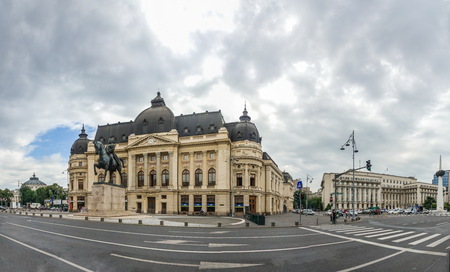 BUCHAREST, ROMANIA - 07.21.2018. Central University Library Bucharest University in Romania. Panoramic view