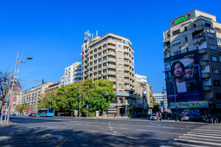 BUCHAREST, ROMANIA - SEPTEMBER 19, 2015. The way called Magheru, main street, Intercontinental Hotel. The square Piata Romana.