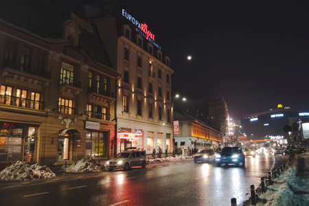 Bucharest, Romania September 18, 2015 Night traffic on Magheru Boulevard in Bucharest, Romania.