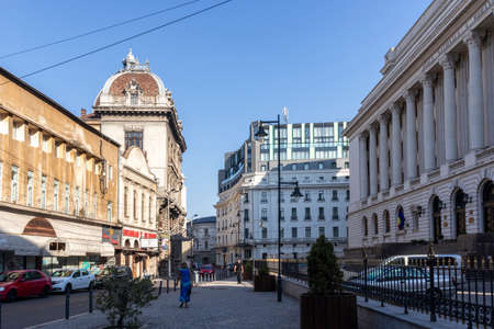 Bucharest, Romania, 8 November 2020 - Old buildings on Nicolae Balcescu (previously known as Gheorghe Magheru) boulevard in Bucharest, Romania, in a sunny autumn day