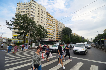BUCHAREST, ROMANIA - August 28, 2017: street view of downtown in Bucharest, Romanian