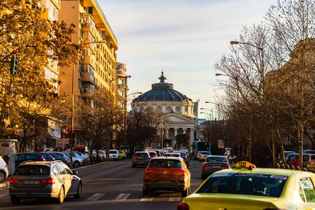 Bucharest center view, with the Romanian Athenaeum in front