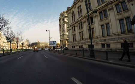 Changes and complications caused by coronavirus epidemy, world without crowds, virus empties streets. No traffic jam, no pollution, empty streets in downtown Bucharest, Romania, 2020