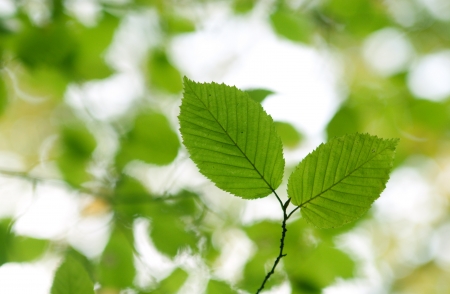 green spring hornbeam leaves macro