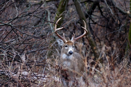 Whitetail Deer Buck standing in a thicket.