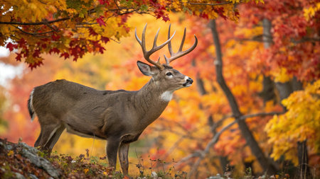 Whitetail Deer Buck in Autumn Fall Colors in the Forest.