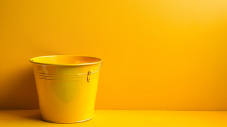 A minimalist image of a bright yellow bucket against a solid yellow background, creating a bold monochromatic effect that is clean and modern.