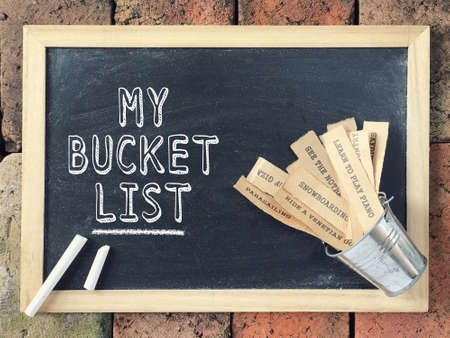 Motivational and inspirational concept - My Bucket List written on a blackboard.