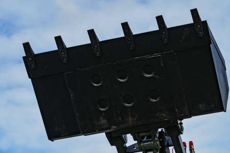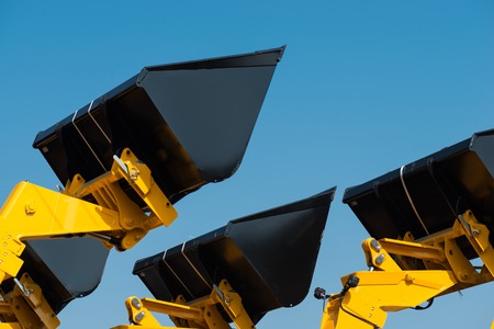 Bulldozer excavation scoop on sky background