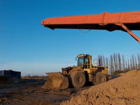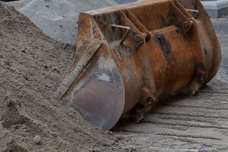 loading sand with bucket on the excavator, note shallow depth of field