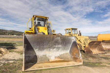 Heavy construction equipment wide angle photo shot in the evening time