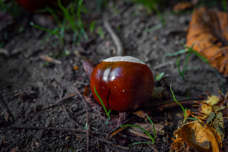 Wwild Forest Chestnuts with Shell and Thorns Autumn Harvest