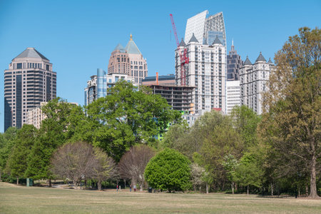 Panoramic view of the Oak Hill in the Piedmont Park and Midtown Atlanta behind it in autumn day, USA