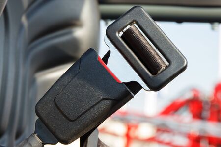 Fastened seat belt in car or other industrial machinery. Concept of close seat belt before driving