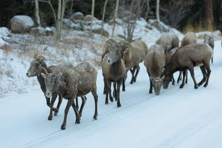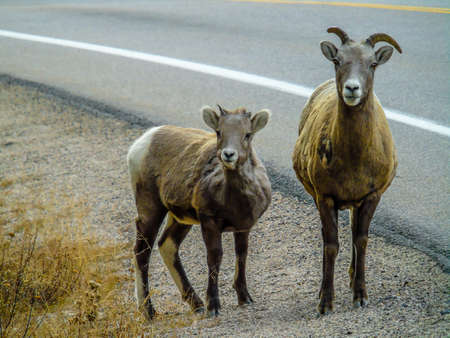 Big horns on the road side, Jasper National Park, Alberta, Canada