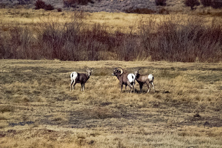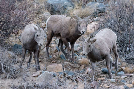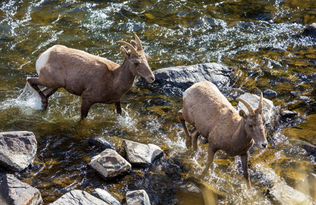 Wild Bighorn Sheep in the Waterton Canyon, Rocky Mountains, in Littleton, Colorado