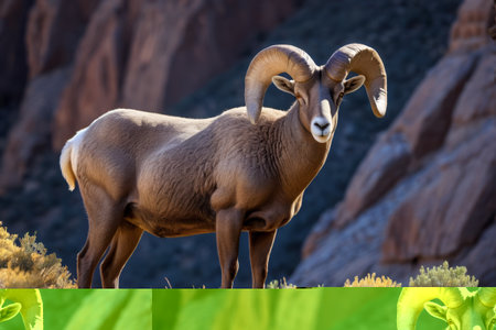 Bighorn Sheep Pair in Sunlit Desert Landscape with Natural Vegetation