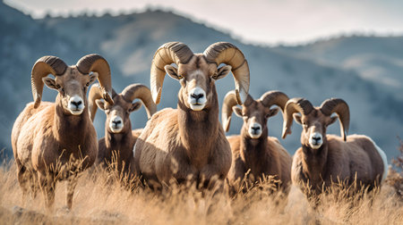 Wildlife Portrait of Big Horn Sheep in Autumn Landscape Generative AI