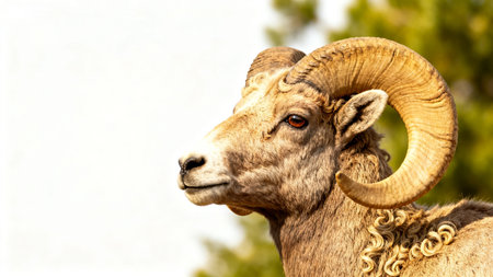 Bighorn Sheep Ram Portrait with Horns in the Background