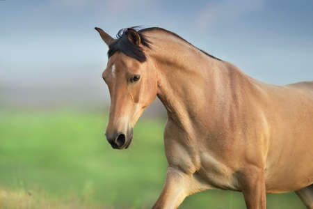 Horse running gallop in the meadow. Beautiful horse in motion.