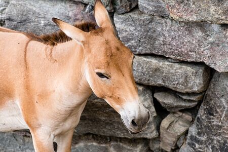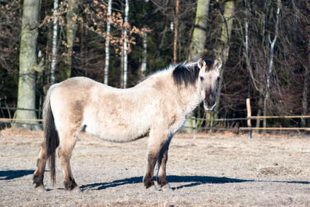 Przewalski's Horse standing on the hill in kiev zoo, ukraine