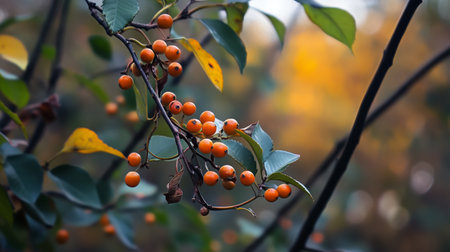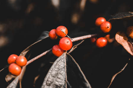 Orange berries on a branch in the garden. Selective focus.
