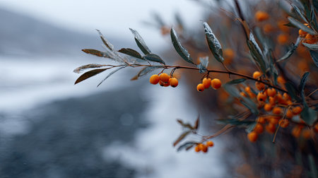 covered with snow wild sea buckthorn