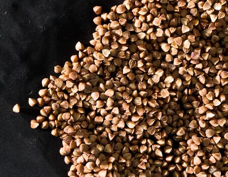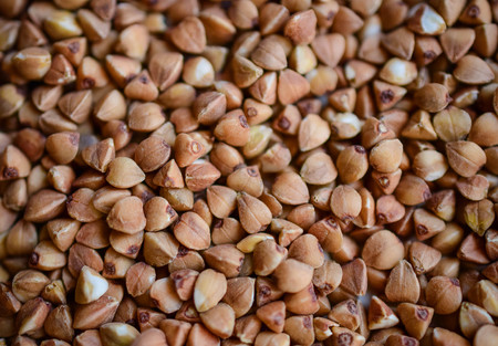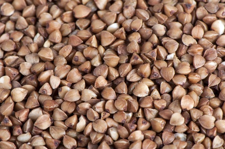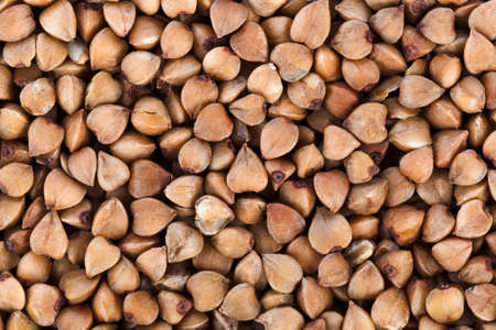 Buckwheat grain closeup, food texture and cook book backgrounds
