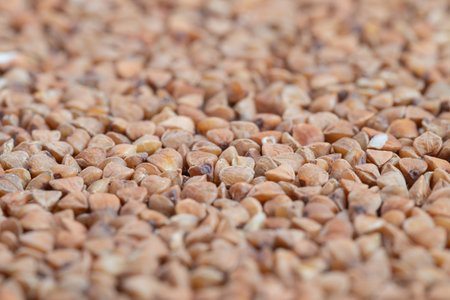 Dry seeds of buckwheat, texture of buckwheat, agricultural dried products, healthy food.