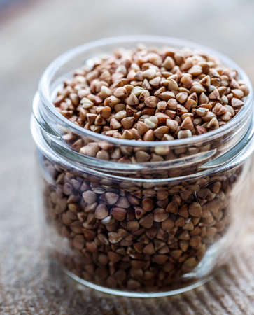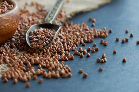 buckwheat on a backdrop, selective focus. rustic buckwheat background.